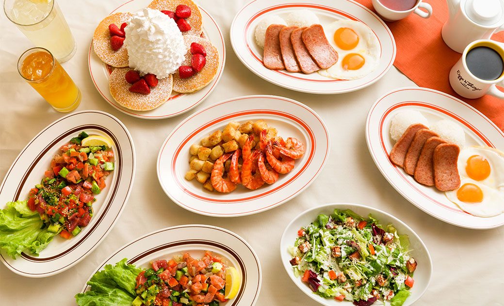 大振りのエビで味わえるガーリックシュリンプやアヒポケなどのハワイのロコフードに加え、お好きなトッピングで楽しむパンケーキをご用意。ハワイの雰囲気を気軽に感じられます。