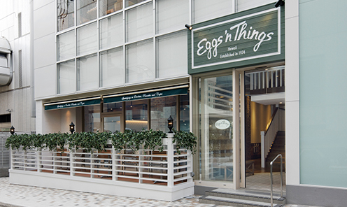 Eggs 'n Thingsで人気のエッグベネディクトとパンケーキが楽しめるセットメニューです。