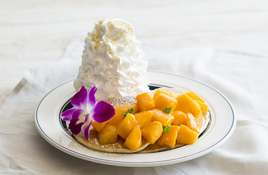 常夏ハワイを満喫するならEggs ’n ThingsへGO! 「Mango A Go Go!」 香りと甘みが強いマハチャノック種のマンゴーをふんだんに使用した パンケーキ2種と大人気のシェイブアイスから新作登場! ~ 8月1日(火)~ 8月31日(木)まで販売 ~