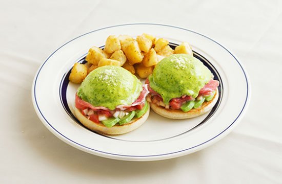 特製バジルソースの香りが口いっぱいに広がるエッグスベネディクト