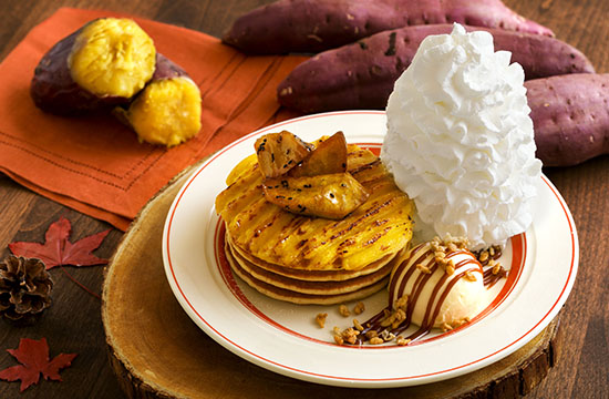 EGGS ’N THINGS JAPAN株式会社(本社:東京都港区 代表取締役 村上卓也)は2019年9月2日(月)~2019年9月30日(月)の期間中、濃厚な甘みが特徴的な秋の味覚である安納芋を使用した『スイートポテトパンケーキ』を販売いたします。